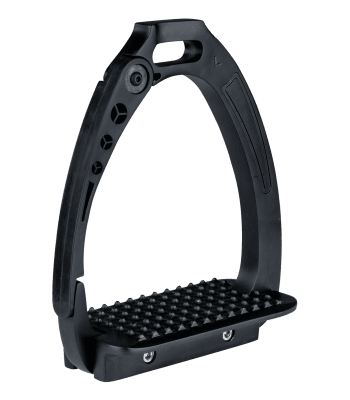 Stigbyglar i högkvalitativt aluminium med 6,5 cm bred fotplatta. Yttersidan löser ut vid fall med hjälp av av ryttarens vikt och förhindrar att man fastna i stigbygeln.