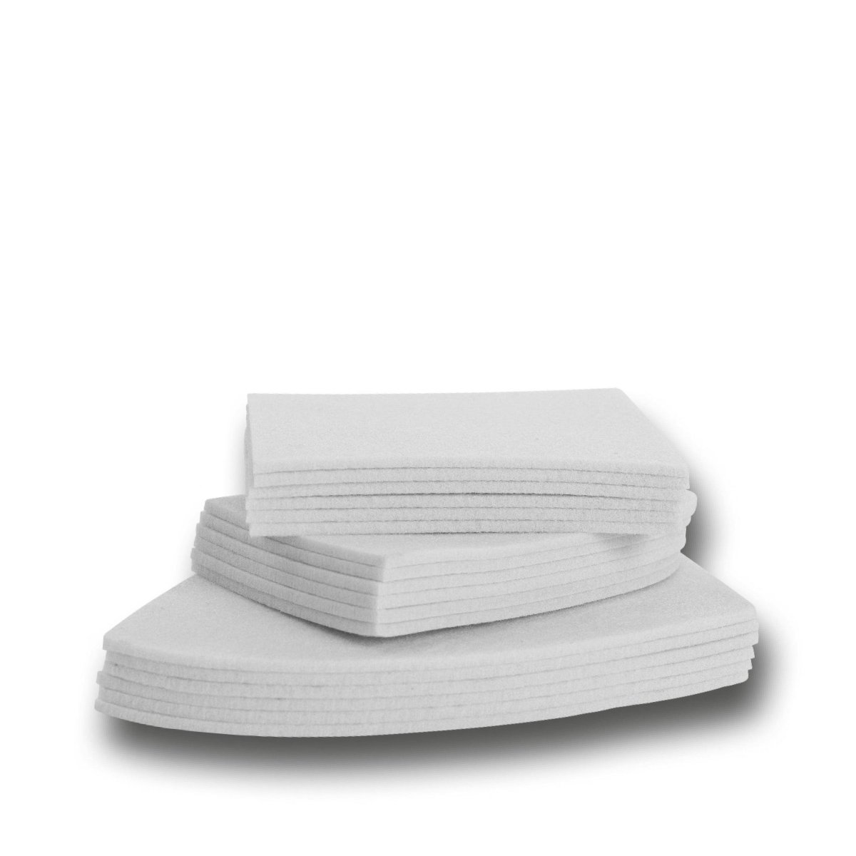 Inlägg av filt till protectors korrektionspaddar med fårskinnsinsida. Komplett set med 18 st filt-inlägg.
