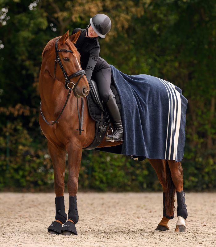 Sölden fleecefilt är snyggt och iögonfallande. Det tjocka materialet (330 gr/m²) ger optimal värme för häst och ryttare under kalla dagar. Tack vare sin mångsidighet är Sölden fleecefilt en riktig allroundare. Ränderna på filtens nederkant ger en moderiktig touch.
