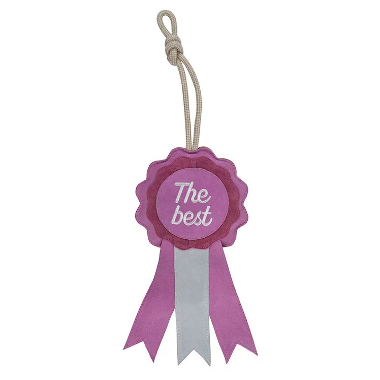 Leksak/gosedjur till häst. Prisrosett tillverkad av Mocka. Optimal för hästar som lätt blir rastlösa i boxen, då denna kan hjälpa till att sysselsätta hästen och motverka tristess. Enkel att hänga upp.