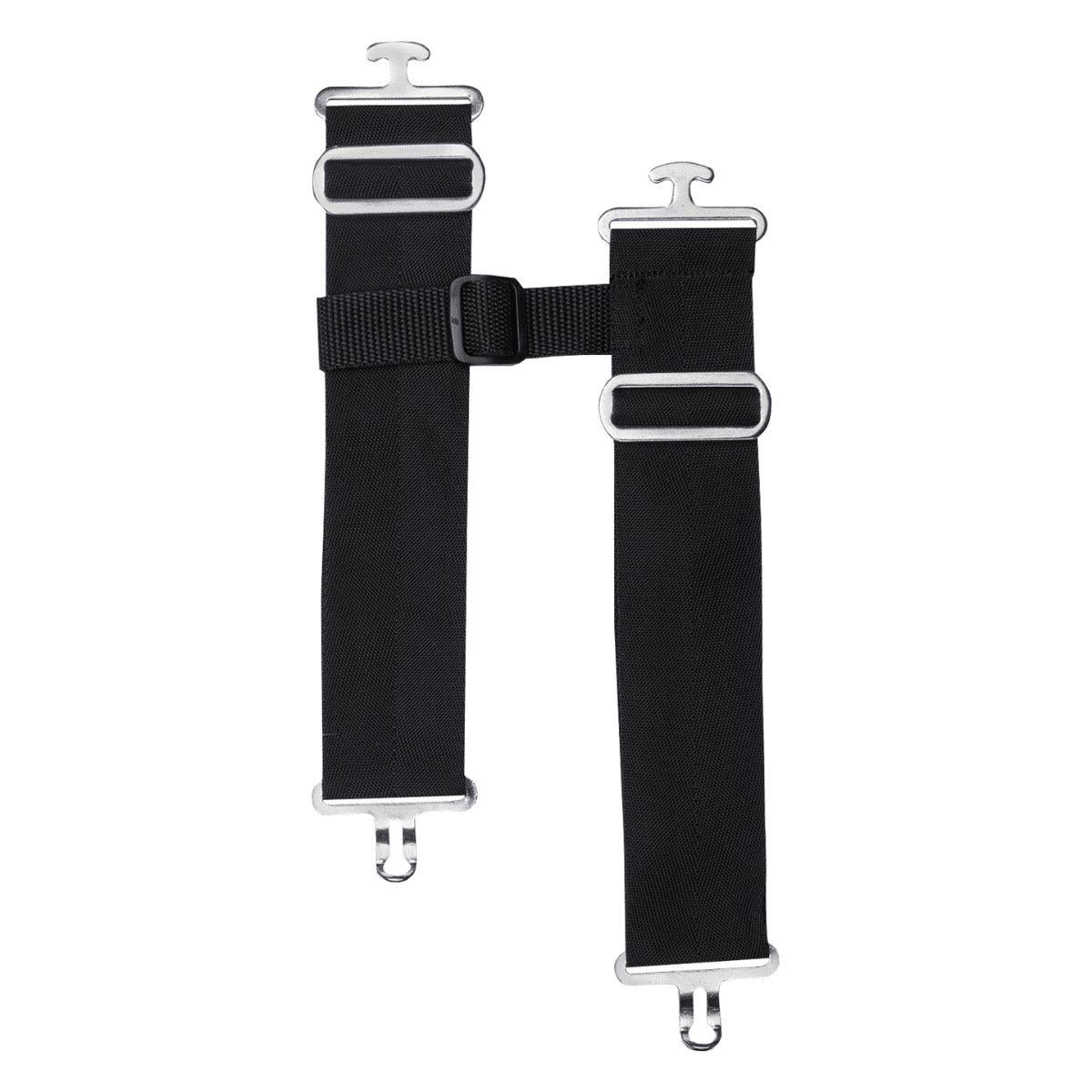 Justerbar bogbreddare med T-spänne. Kan justeras från ca 30 cm till 50 cm. Välj själv om du vill använda endast ett bogspänne eller båda.Fungerar lika bra som förlängare till täckesgjordar med T-spännen. Remmen som håller ihop de två spännena går att klippa av.