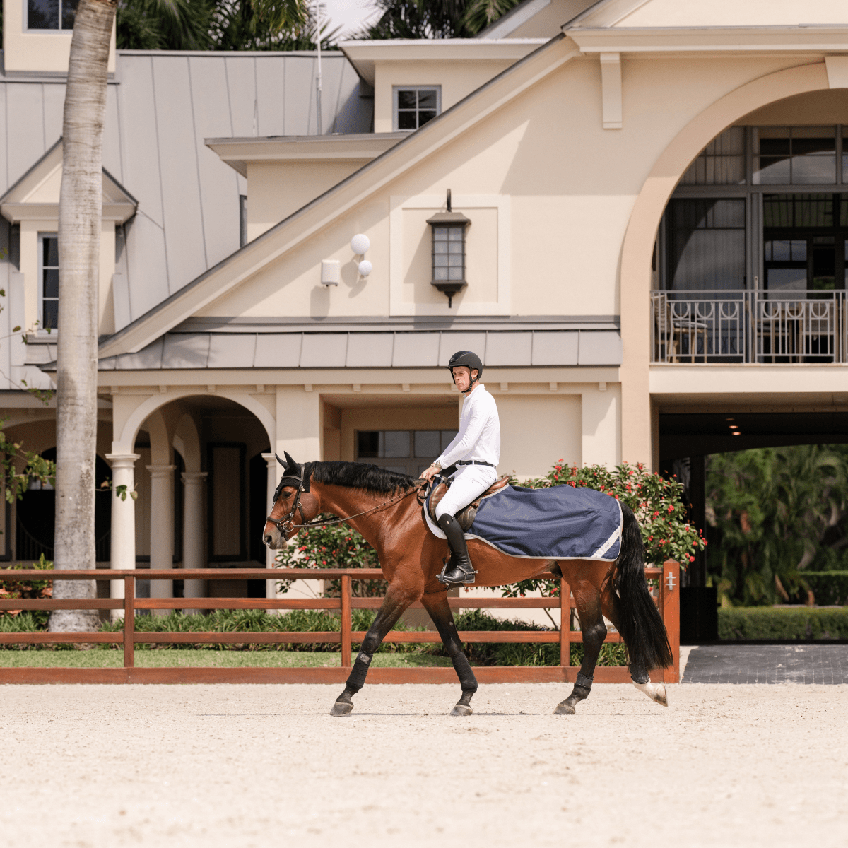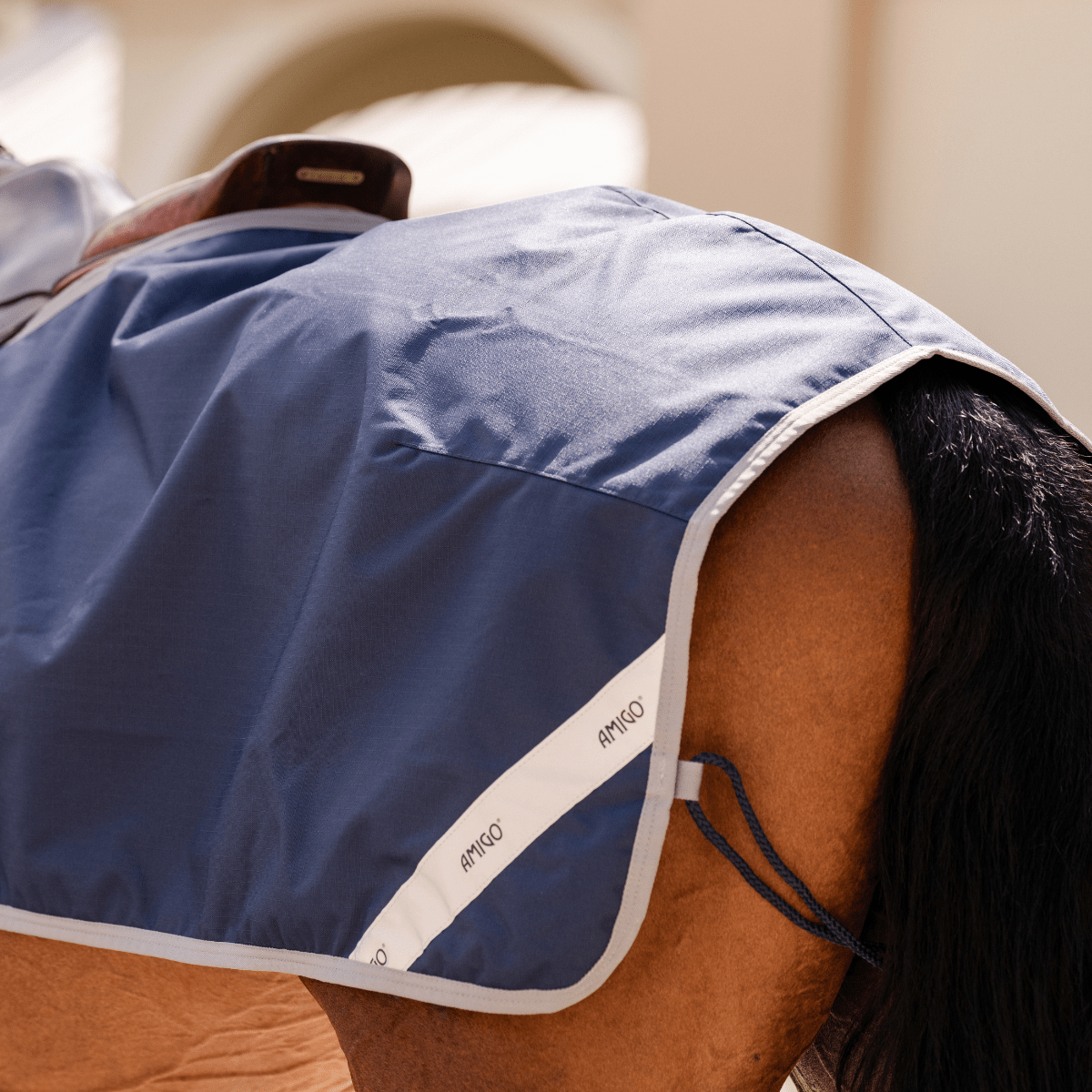 Yttermaterialet är tillverkat i slitstark 900D ripstop-polyester som är både vattentätt och ventilerande. Täcket är dessutom utrustat med reflexdetaljer på båda sidor för ökad synlighet och säkerhet under ridning i mörker.