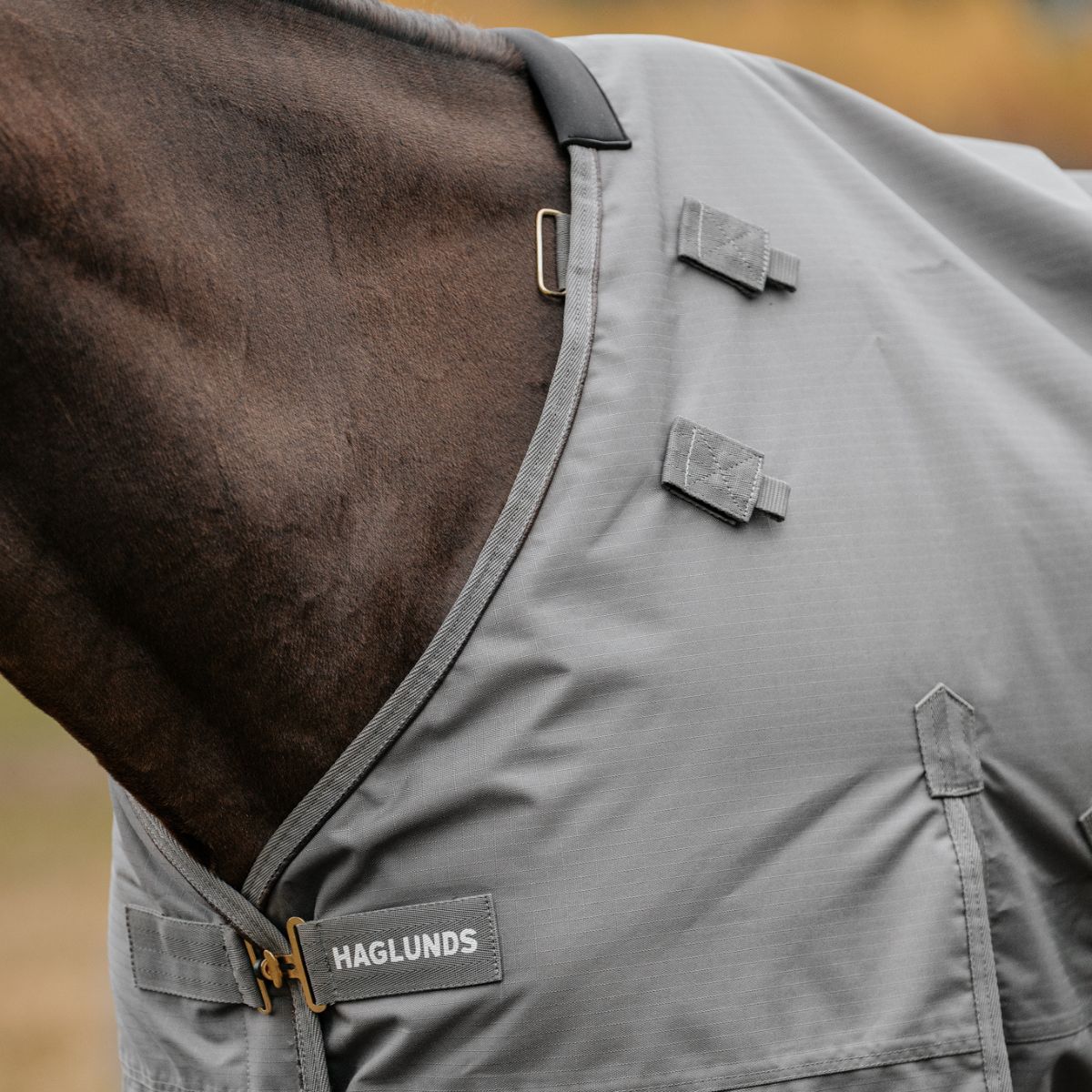 Äntligen är årets Höst/Vinterkollektion från Haglunds här. I år är designen minimalistisk och användarvänlig, med en färg som maskerar smuts effektivt kombinerat med detaljer i faux läder och mässing för att höja uttrycket. Detta regntäcke erbjuds i 50g fyllning och levereras tillsammans med en avtagbar halsdel, utformat i Haglunds omtyckta passform.
