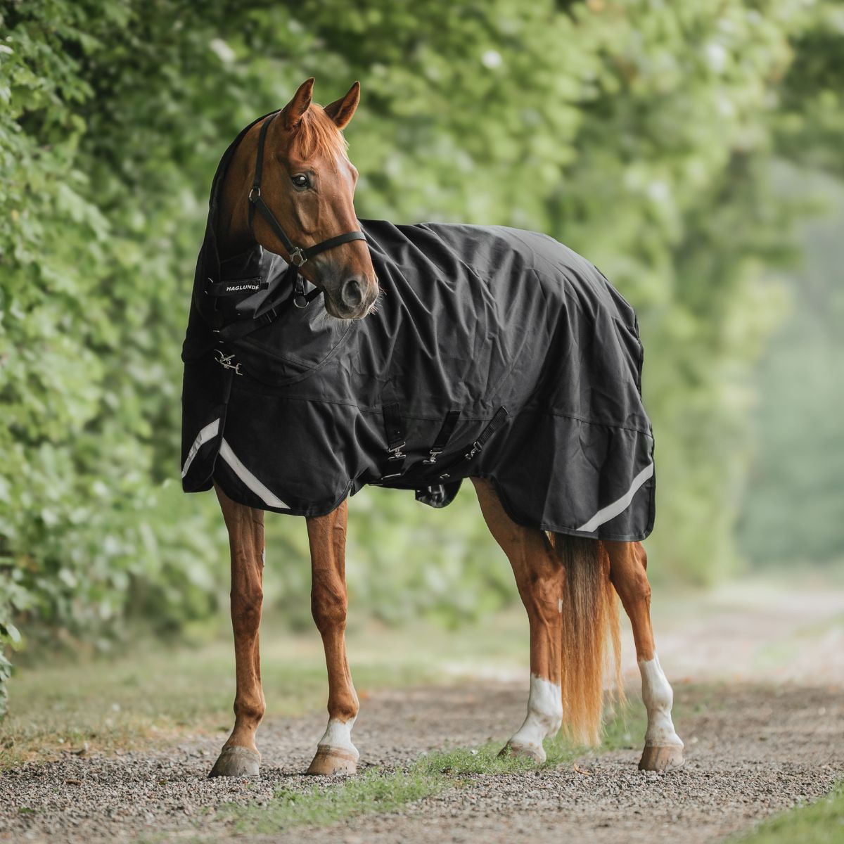 Vi är så säkra på kvaliteten av våra Premium täcken att vi lämnar 3 år garanti på dess vattentäthet och andningsförmåga. Att regntäcken ska stå emot stora mängder regn är någonting som är självklart för Haglunds, till den grad att det är garanterat. Njut av kännslan att känna dig trygg med att hästen är torr i hagen under dagen med utetäcken från Haglunds Premium Collection.