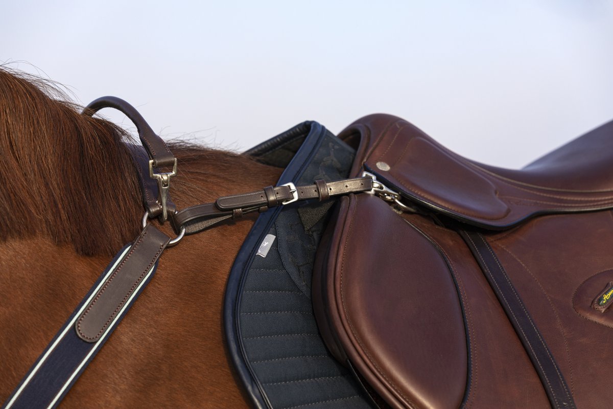 Horseware Micklem®-förbygel och martingal är tillverkat i kvalitetsläder med slitstarka elastiska sektioner. Avtagbara D-ringsremmar för att erbjuda mångsidig användning som martingal eller brösta. Det finns maximala justeringsmöjligheter på sidorna av halsen, en rem under magen och en avtagbar martingal-fäste för att skapa en åtsittande, pålitlig och skräddarsydd passform vid användning. 3-punktsdesignen ger din häst större rörelsefrihet runt bogen under hoppning.