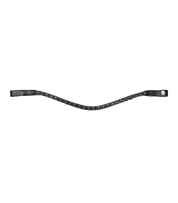 Glitter och glamour i massor! Detta svarta läderpannband är lätt böjt och har stora skimrande stenar i mörkgrått.