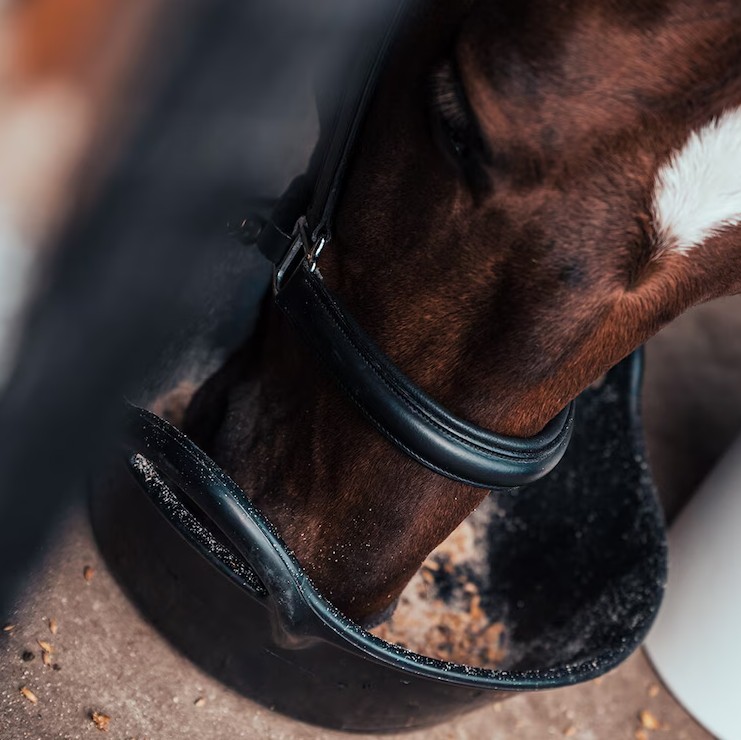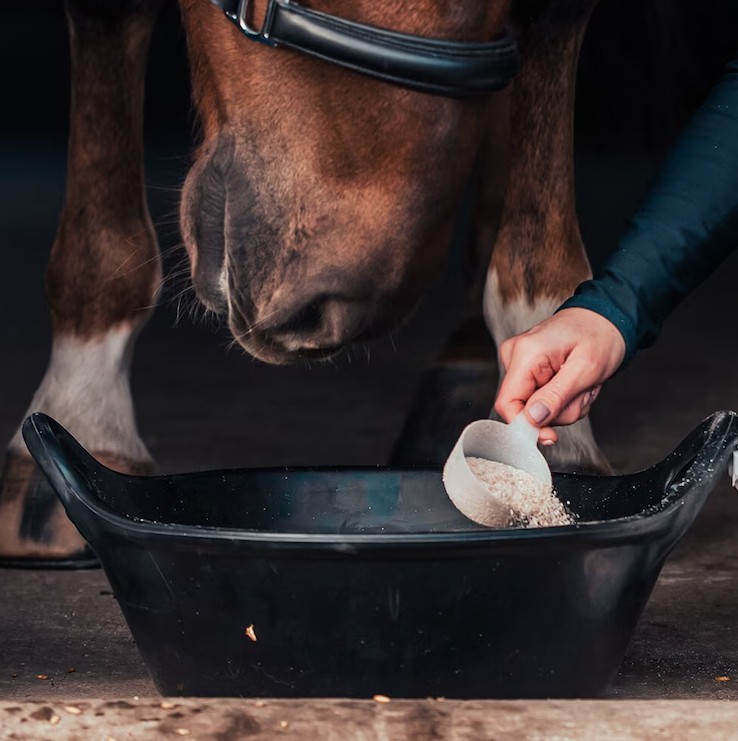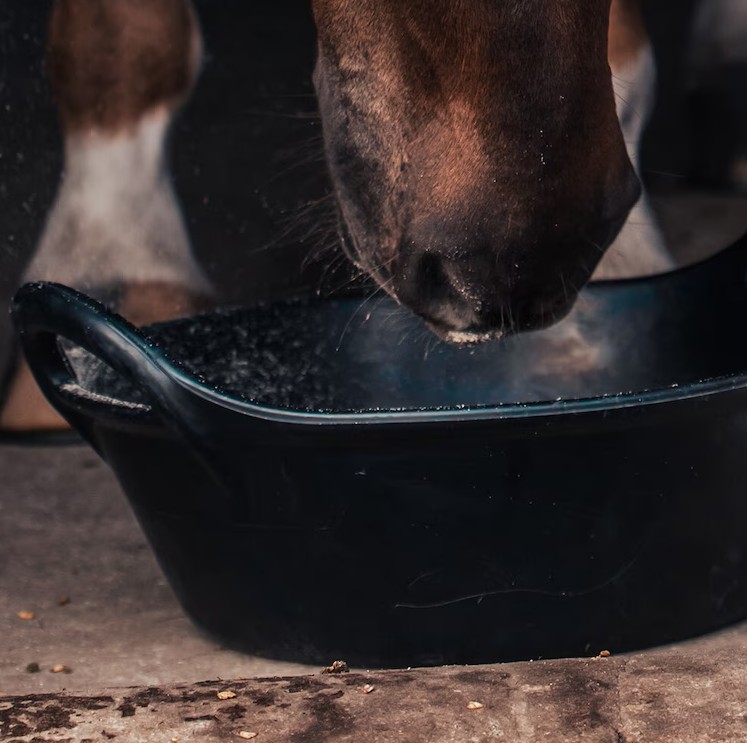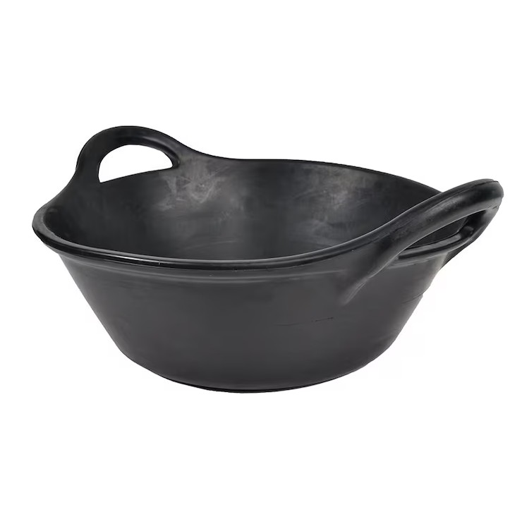 Tålig och flexibel foderkrubba i mjukt svart gummimaterial, med två rejäla handtag.