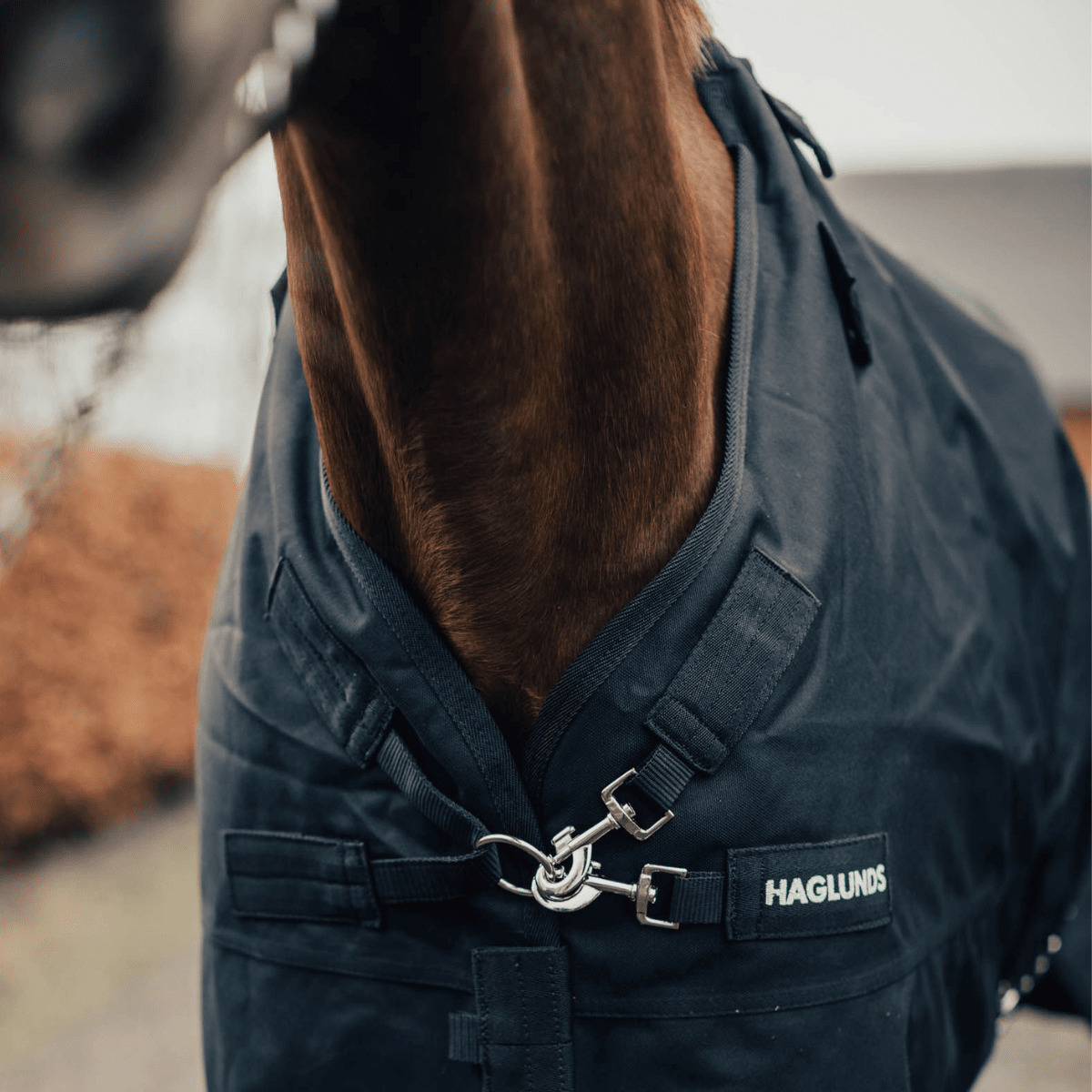 Garantin gäller inte vid normal förslitning, skador från yttre påverkan (t.ex. taggtråd, grenar eller bett från andra hästar), felaktig storlek, felaktig skötsel eller kemisk påverkan från olämpliga rengöringsprodukter. Modifieringar och reparationer som inte utförts av Haglunds omfattas inte heller.