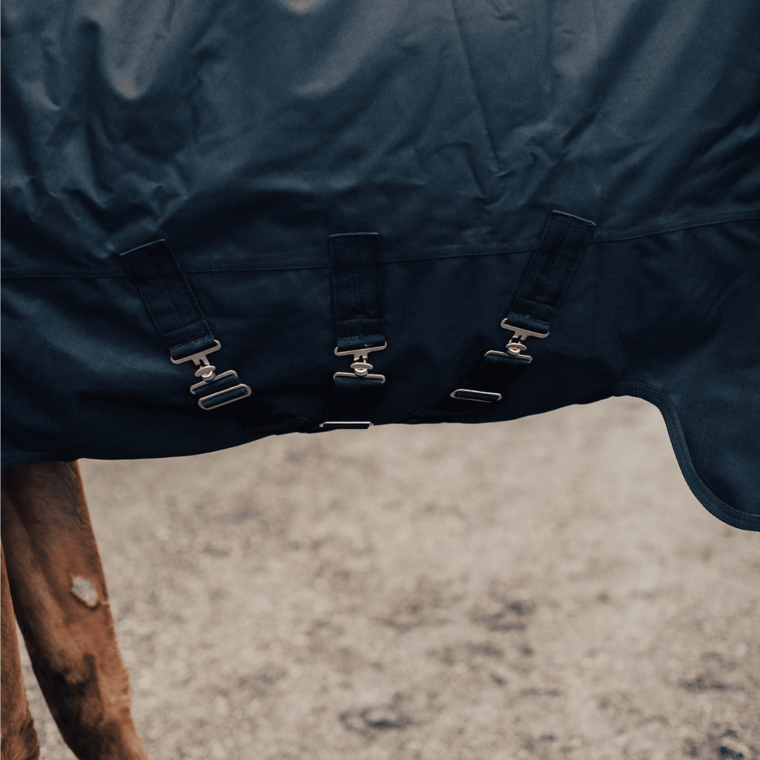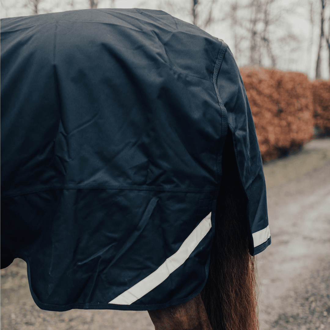Ett regntäcke med 100g fyllning som är tillverkat i tåligt 1200D vattentätt material som ger maximal vattentäthet och hög prestanda. Med sitt värmande 100g fodrade matieral blir utetäcket användbard vid svalare väder och klimat eller mildare väder och klippt häst.