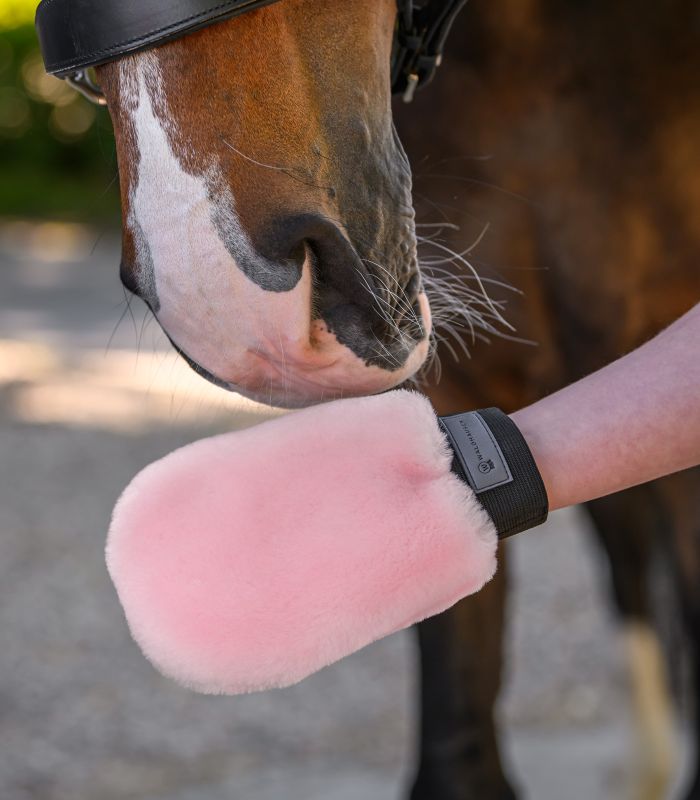Lucky lammskinnshandske är det perfekta hjälpmedlet för alla som värdesätter en ren och glänsande päls. Tillverkad av högkvalitativt, äkta lammskinn, avlägsnar den tillförlitligt damm, smuts och lösa hår – mycket skonsamt och samtidigt skyddar den din hästs hud.