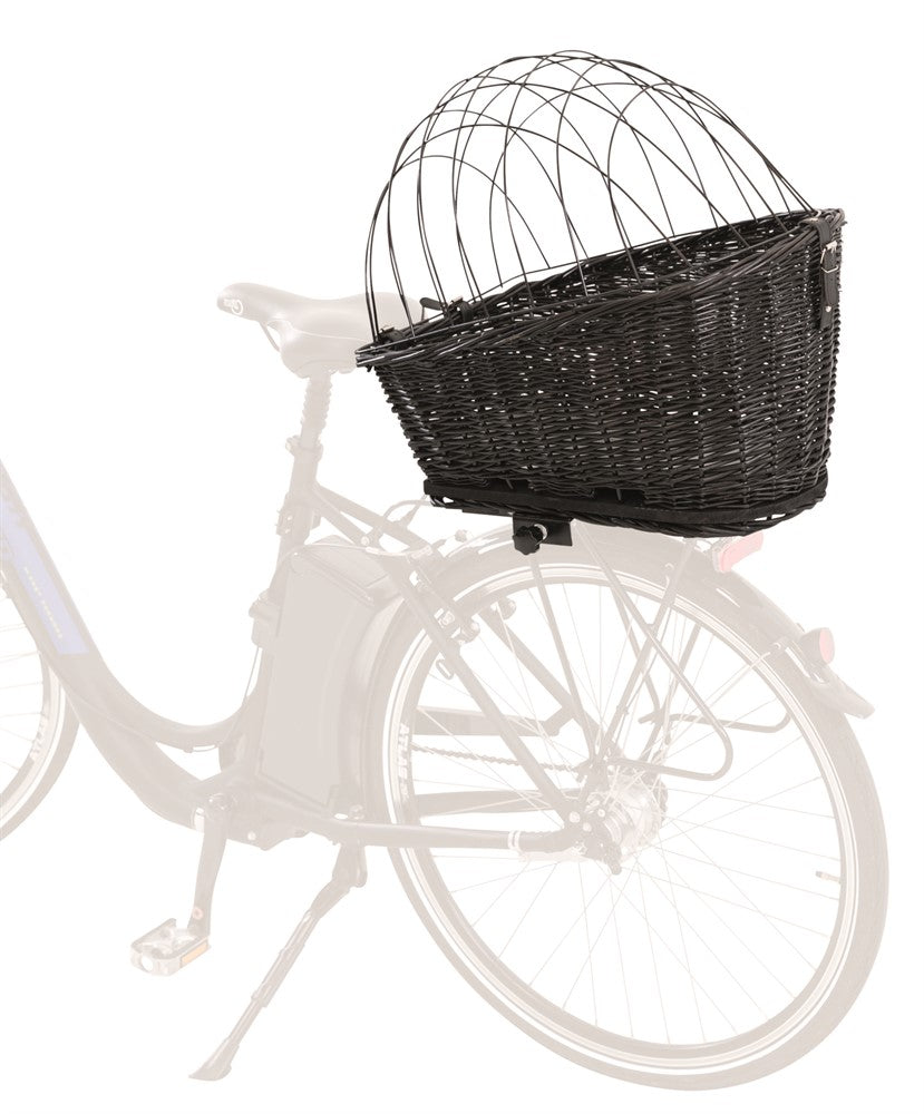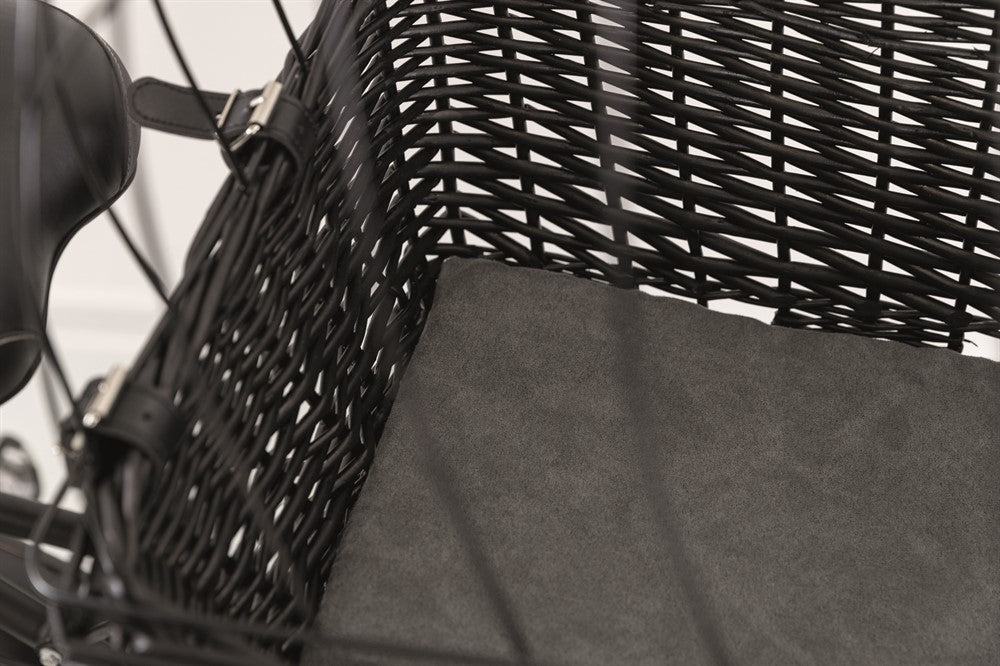 Cykelkorg för hund/husdjur upp till 8kg som fästes på pakethållaren. Korgen är i svart färgad pil och gallret är pulverlackat. Ingår en grå dyna i mockaimitation.