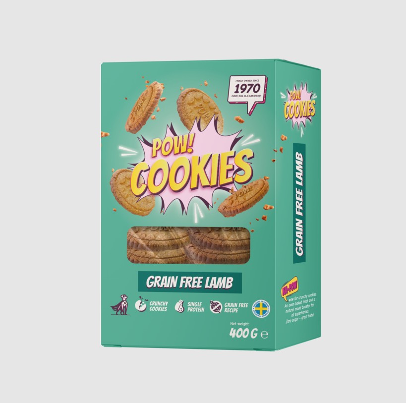 Knapriga, ugnsbakade hundkex med smak av lamm! POW Cookie Grain Free Lamb är spannmålsfria, utan tillsatt socker och tillverkade med naturliga ingredienser.