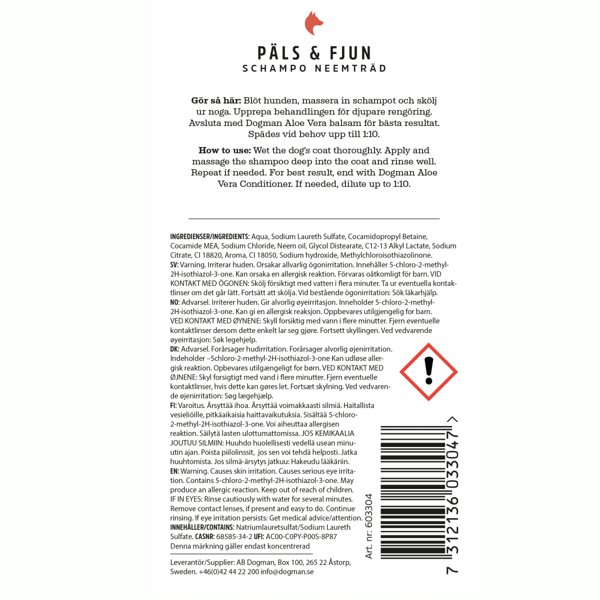 Bakteriehämmande och djuprengörande hundschampo med neemträdsolja.