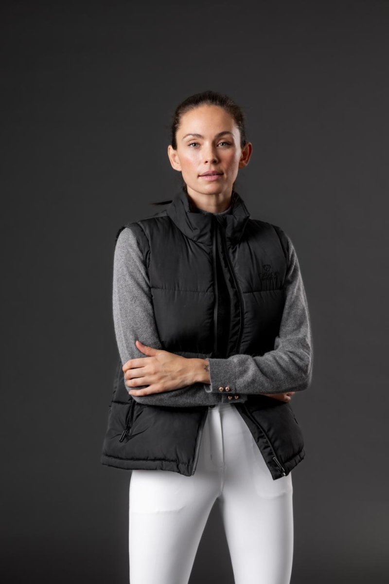 Pufferväst med hög hals, Tjock och kraftig syntetisk fyllning. All over tryckt foder med Catago-logotyp och Catago-logotypbroderi på bröstet.