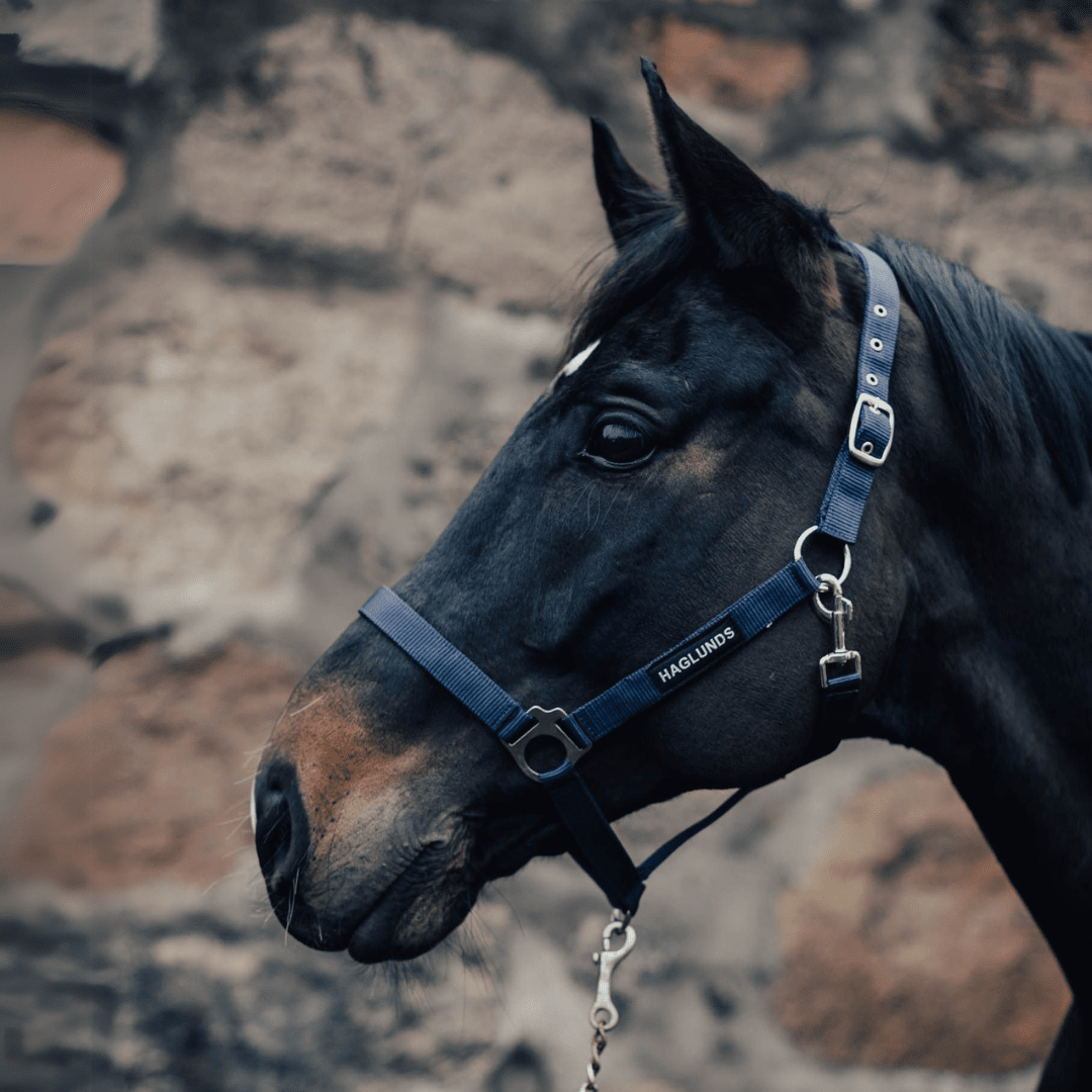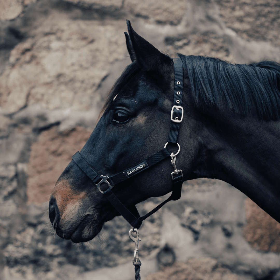 Slitstark och smidig grimma från Haglunds, perfekt för vardagligt bruk. Lätt och ofodrad grimma med spännen i silvermetall. Justerbar i nacken för optimal passform.
