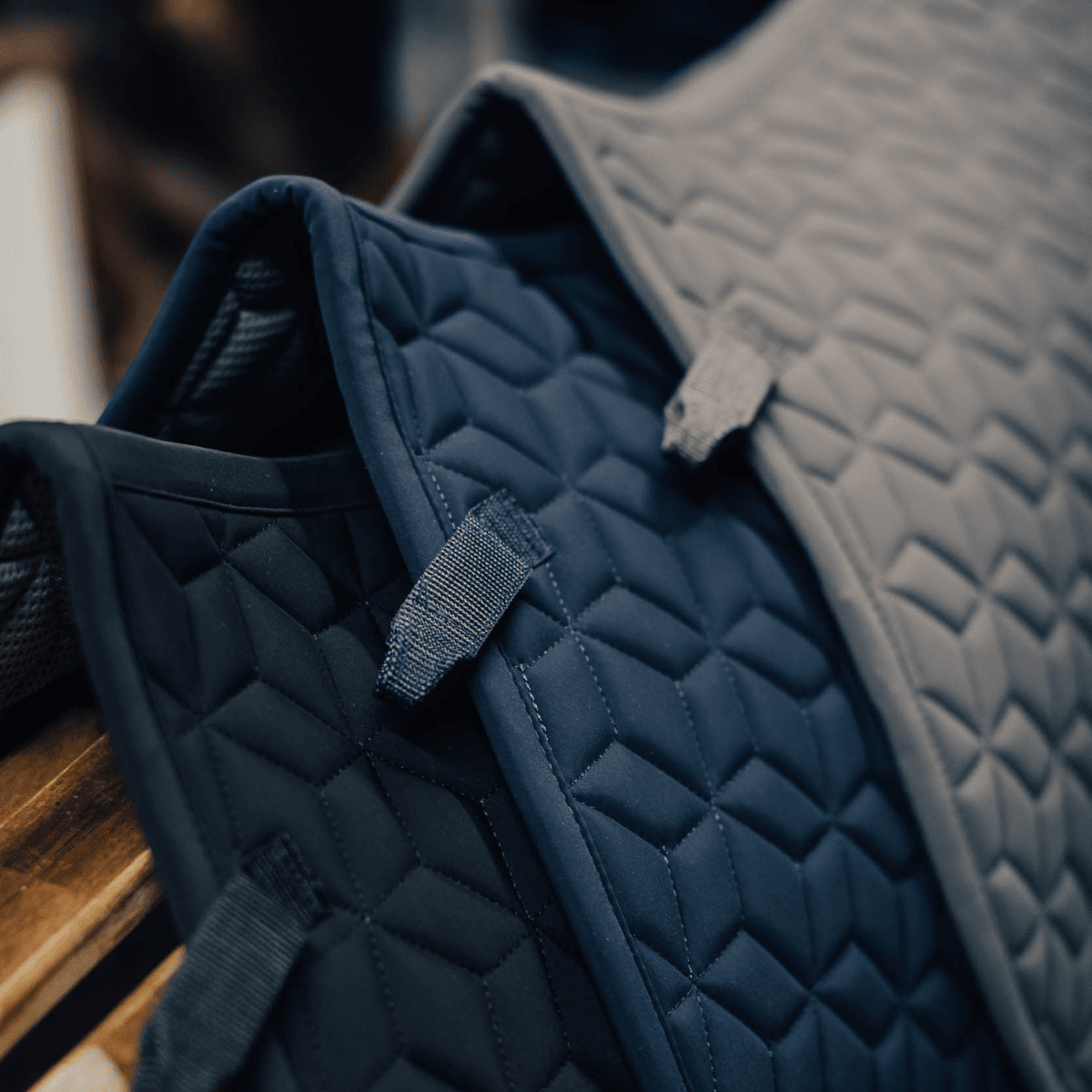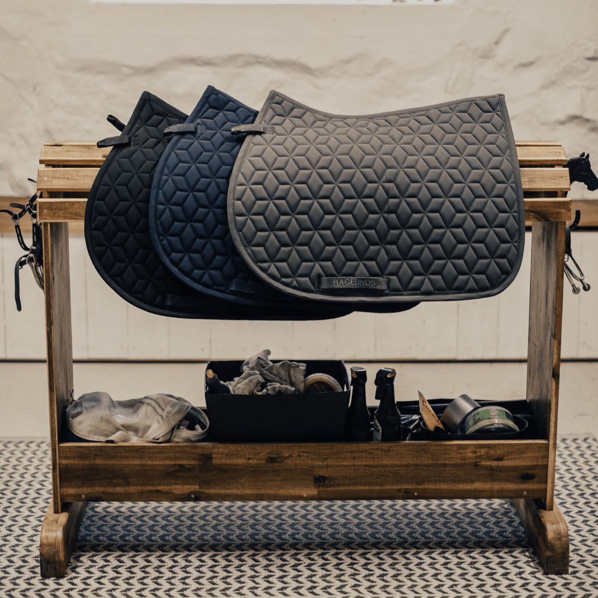 Schabrak med insida i coolmax för sval och comfortabel känsla mot hästen. Perfekt när hästen tränar och blir svettig och varm samt under den varma årstiden. Tät cube mönstrad quilt, för en stabil passform. Haglunds logga vid sadelgjordsfästet. Korta stroppar att fästa i sadelgjordstropparna.