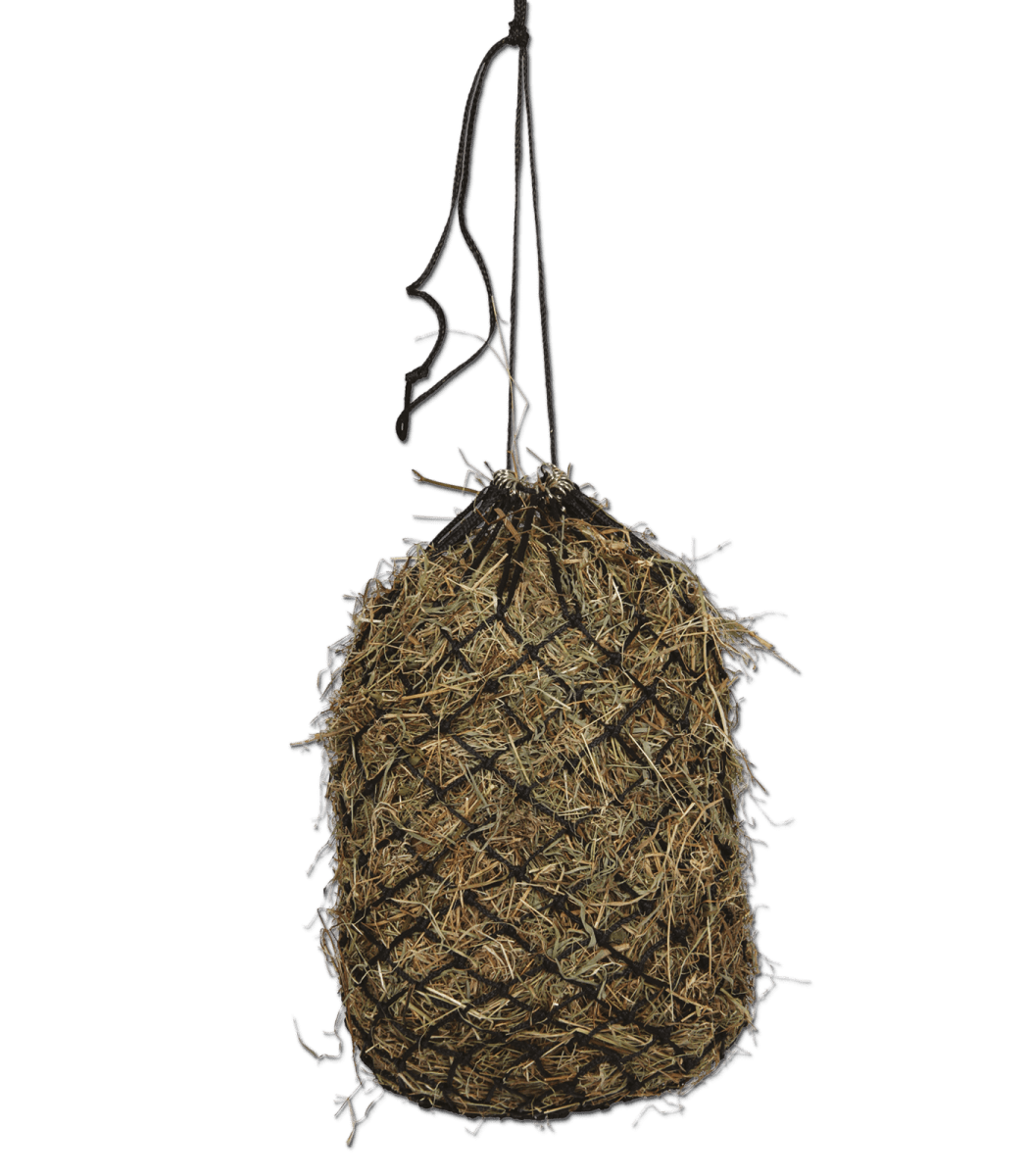 Slitstarkt hönät, småmaskigt (varje öppning ca 5x5 cm). Med 15 metallringar uppe som gör det lätt att fylla med grovfoder.