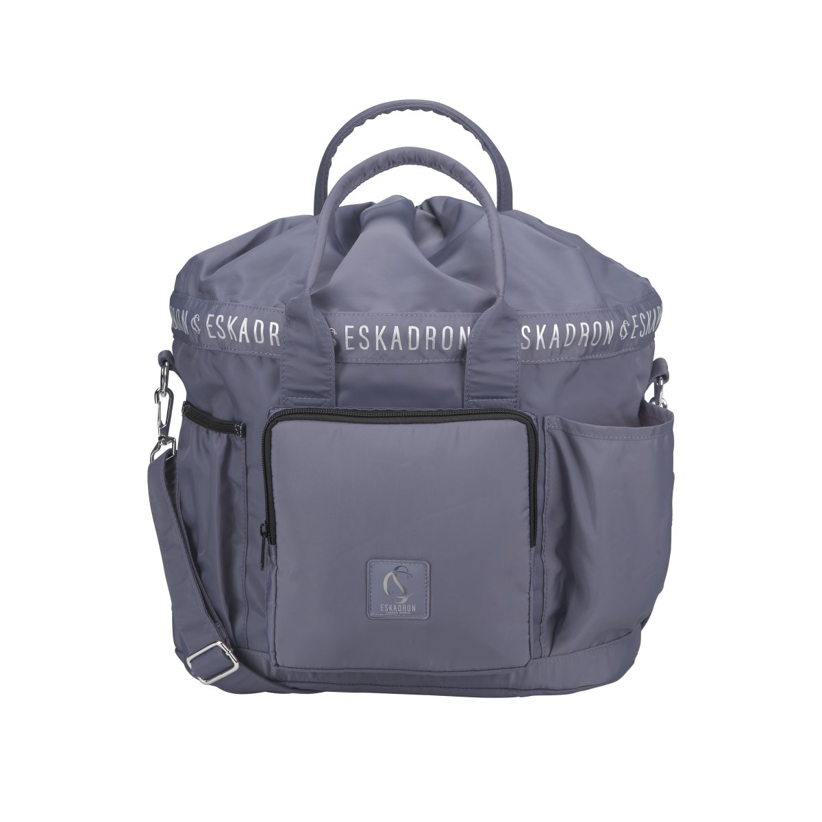 Groomingbag med högglansig yta som ger ett lyxigt utseende. Många smarta fickor för alla ryttarens och hästens tillhörigheter. Utrustad med bärhandtag och justerbar axelrem som är avtagbar. Ett fack på utsidan med dragkedja, ett på insidan. Eleganta silverfärgade metallbeslag. Dekorerad med stilfullt emblem