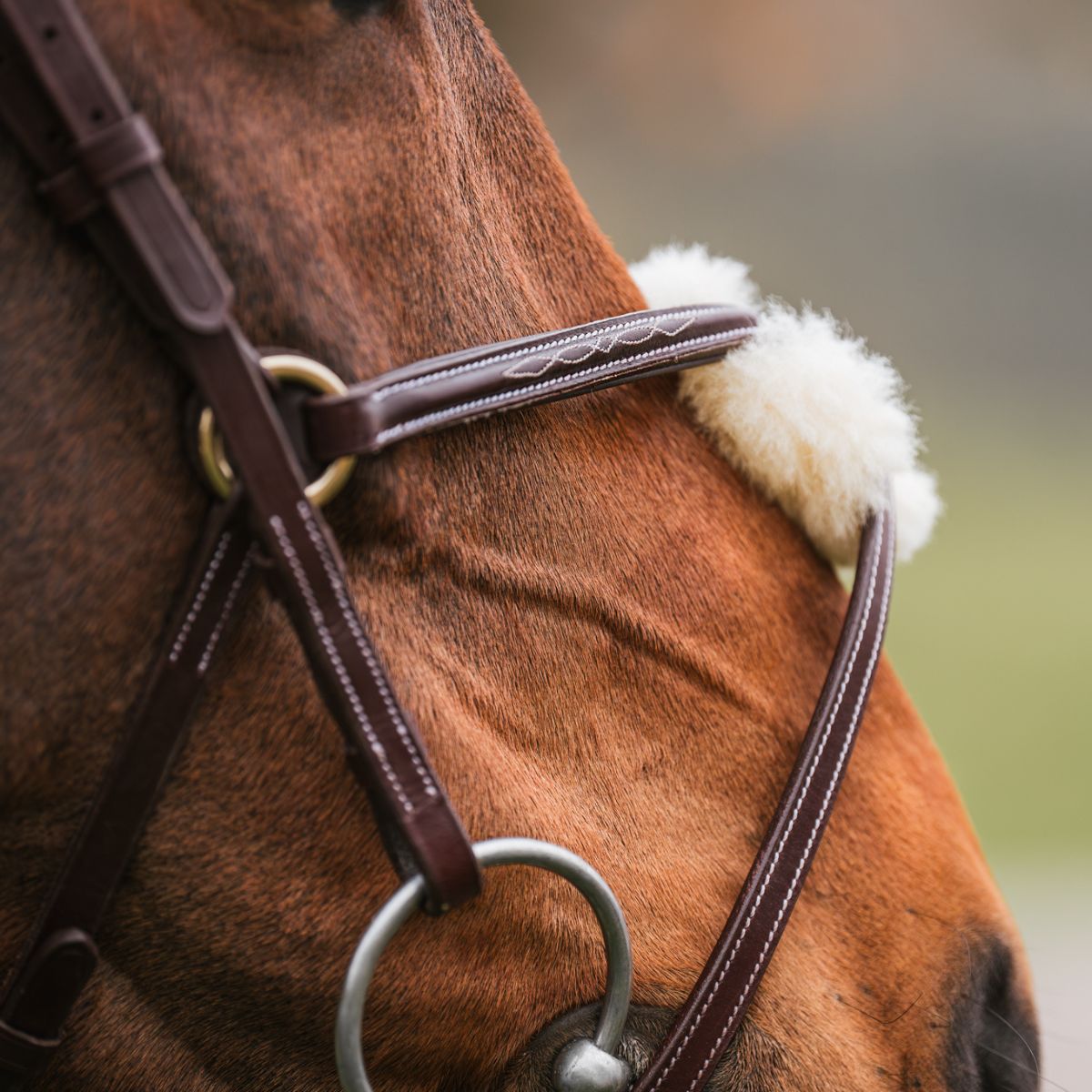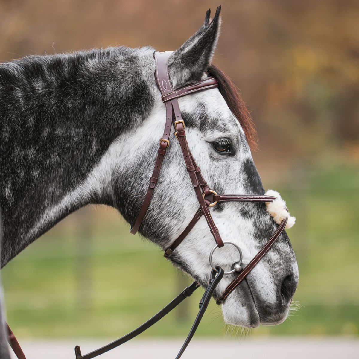 Pullarträns i det mjukaste lädret med skön padding i fårskinn på nosen samt extra mjuk padding vid nackstycke. Detta träns är tillverkat av högkvalitativt australienskt läder som är mjukt redan vid första användning, det är elegant designat med vita stickningar och mässing-färgade spännen genomgående vilket ger en känsla av exklusivitet och prestation. Tränset passar för alla dicipliner men är främst framtaget att passa hopp eller allround hästar.