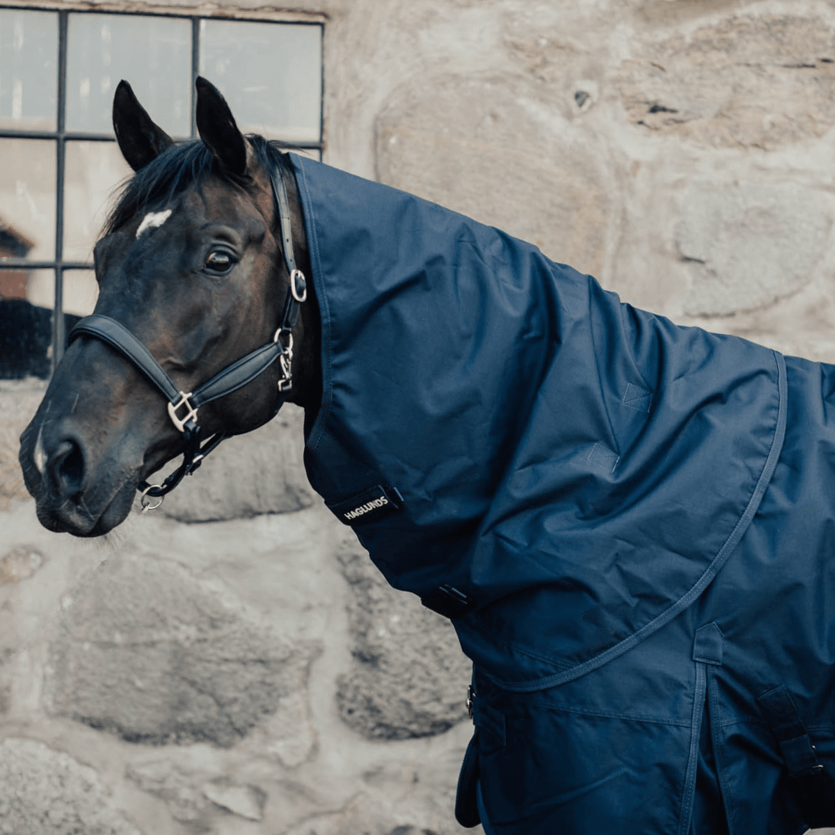 Detta halstäcke är av ett 100% vattentätt yttermaterial samt av ett blankt innerfoder som tillsammans släpper igenom luft och andas. Halstäcket fästs på något av dina andra täcken från Haglunds med hjälp av kardborrspännen. Under hästens hals spänns det fast med två kardborrknäppen. Haglunds lösa halstäcken har optimerad passform och utlovar skydd mot kyla och fukt när din häst vistas i hagen.