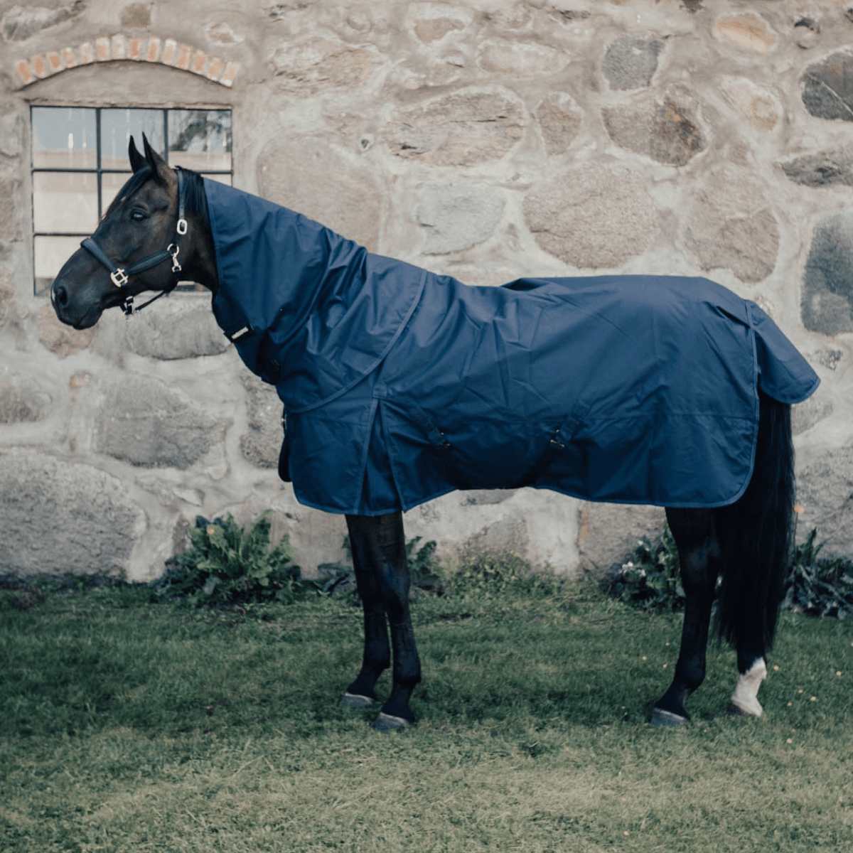 Separat halstäcke som fästs i hästens utetäcke för att ge optimalt skydd mot väder och vind.