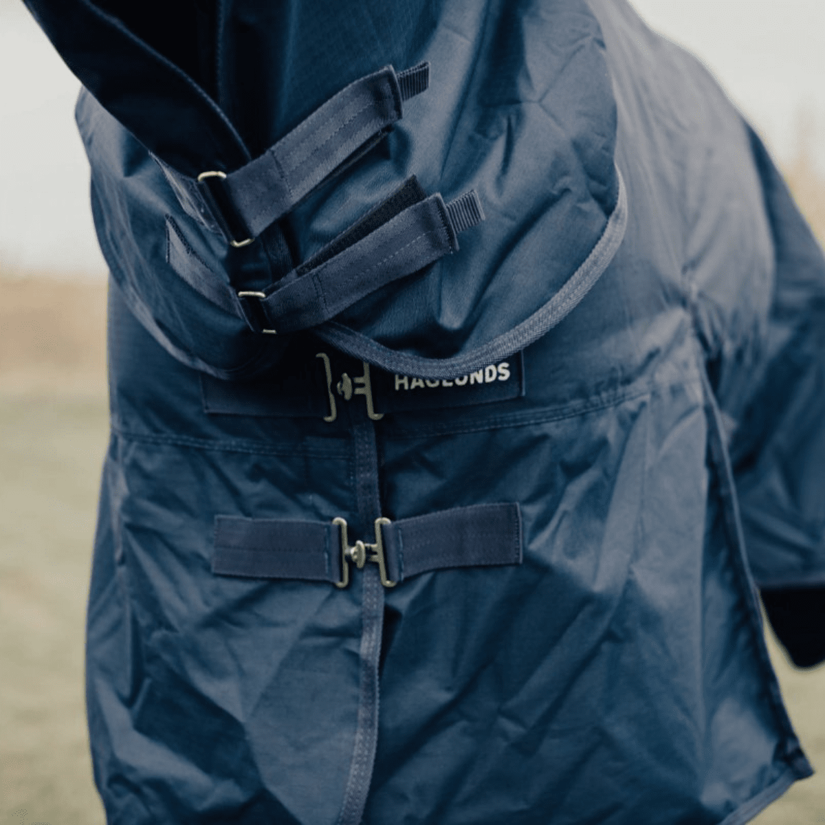Vattentätt och värmande utetäcke som användes på vintern för att hålla hästen torr och varm. Yttermaterial av slitstarkt 600D ripstop som både andas och är vattentätt 3000 mvp. Vintertäckets insida är i ett blankt material som förhindrar skav. Fast hals för optimalt skydd och komfort. Dubbla kryssgjordar med dold resår vid spännet. T-spännen och kardborre stängning i fronten samt kardborre spännen för att stänga halsdelen. Avtagbara elastiska bensnören. Välplacerade bogveck för extra rörlighet. Stor svansflapp med pressveck.