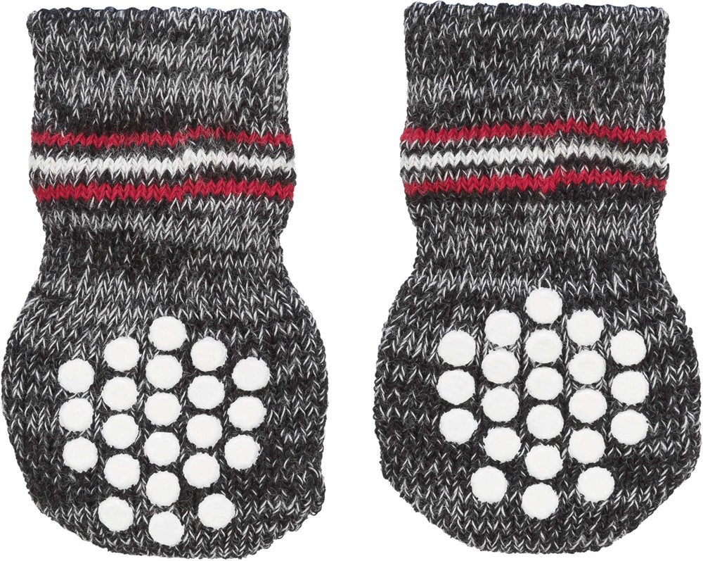 Hundstrumpor i bomull med gummipluppar som ger hunden bra grepp på alla ytor. Fungerar även för att skydda sår eller bandage.
